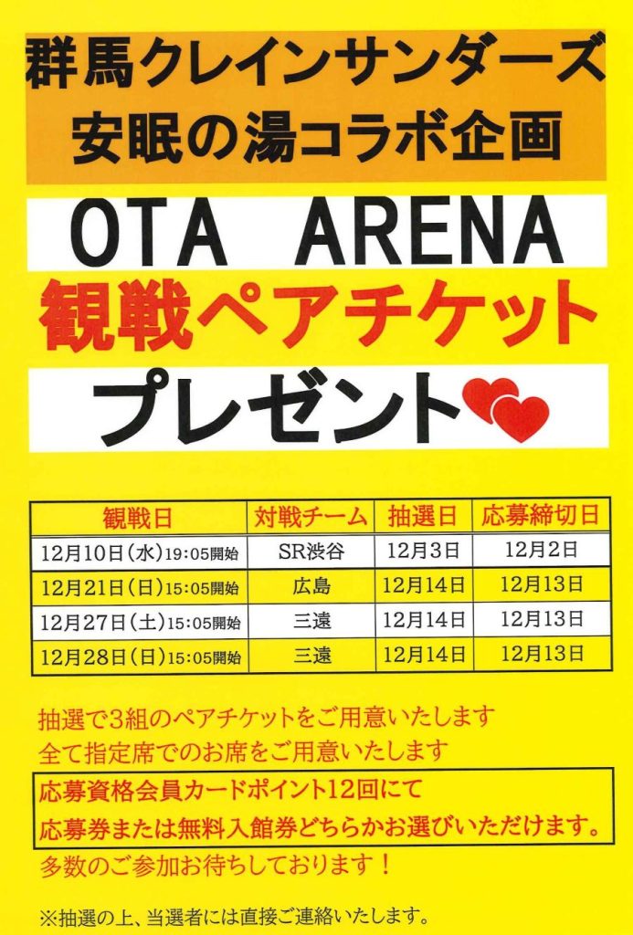 群馬クレインサンダーズペアチケットプレゼント