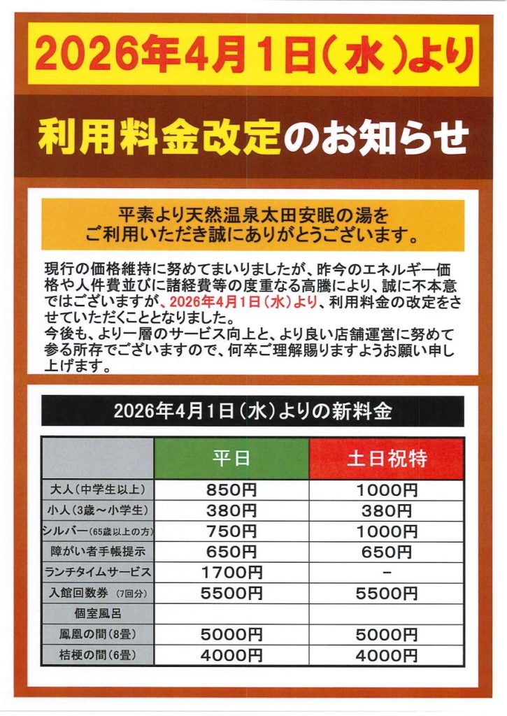 利用料金改定のお知らせ